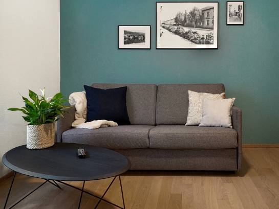 Your personal 35 square metres in the heart of Zug give you both space and a place to retreat. Relax in the box-spring bed or enjoy a glass of wine on the cosy sofa after a busy day.